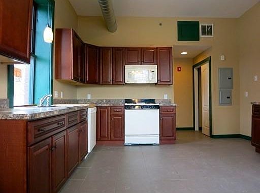 CHECK OUT THE VIEW FROM EVERY WINDOW~ Located barely 1 Mile from the MA PKE ~ Come view this beautifully renovated Historic Building in Downtown Palmer...Step into the Apt's Foyer+hang your coat in the closet, notice the Brick Walls that adorn the 1/2 Bath w/Pedestal sink conveniently off the Enormous Eat-in Applianced Kitchen! Appliances incl: Sidebyside Fridge (ice+h20 in the door!!), Gas range, Built-in Micro, Dishwasher, G.Disp, +Custom Cherry Cabinets Galore all atop a unique Ceramic Floor! Head around the corner to the LR w/laminate flooring + discover High Ceilings/PaddleFan/Vast Windows w/180 degree view of Downtown. Ascend the open staircase to discover the Full Bath w/tiled floor. MBR, carpeted w/Paddle Fan +Walk in closet ~2nd BR has carpet and ceiling fan too. Laundry Room is sep offering New in 2014 Washer+Dryer too. Heated w Propane (individually metered)- You will find this unit is Extremely ECONOMICAL