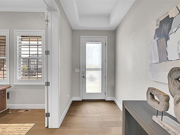 Experience true Colorado living in this stunning ranch style home with unobstructed, panoramic views of the Rocky Mountains. Perfectly positioned on a premier lot, this property offer a rare combination of elegance, comfort, and lifestyle. Inside, you'll be greeted by an open concept design with large windows that fill the space with natural light and awe-inspiring views of the mountains. The kitchen is a showpiece, featuring an induction cooktop, stainless appliances, and an expansive island that seamlessly connects the dining and living areas. Whether entertaining or enjoying a quiet night in, the flow of this home is ideal. The primary suite is a private retreat with mountain views right outside your window, walk-in closet, and stunning five piece bathroom complete with two separate vanities. Two additional bedrooms on the main floor provide flexible space for family, guests, or a home office. Downstairs, the finished basement offers even more room to spread out - a large rec room, two more bedrooms, a kitchenette/bar, and ample storage. Perfect for movie nights, working out, or hosting guests in luxurious comfort. Step outside to your backyard and take in the sweeping Rocky Mountain backdrop without rooftops or obstructions. This is the kind of view that makes every sunrise, sunset, and starlit evening unforgettable. Enjoy the covered patio, deck, fire pit, and stunning water feature. Additionally, the home includes a rare four car garage and convenient access to trails, top rated schools, and Erie's vibrant downtown. This is more than a house - it's a lifestyle you'll never stop appreciating. Schedule your private tour today.