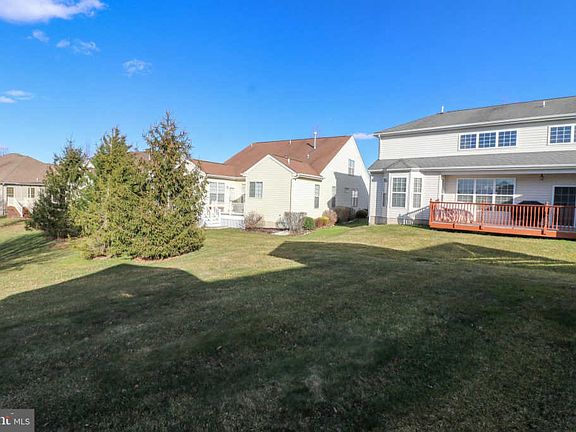 All this on ONE LEVEL. The most ACTIVE, Active Adult Community in Bucks County! Ranch style patio home set on premium lot within Heritage Creek. Two bedrooms, 2 bathrooms, living room, dining room, kitchen, breakfast room, and sunroom. Hardwood floors contribute to the elegance in foyer, and throughout kitchen and sunroom. Kitchen has white cabinetry with pull-out shelving, stainless steel refrigerator, and pantry. Breakfast room is adjacent to sunroom and offers oversized bay window. Living room and dining room combo are quire large and in the front of home for easy entertaining. Dining room has large bay window for extreme sunshine. Family room opens to kitchen and is cozy with gas fireplace. Best room in the house is the sunroom with walls of windows and access to outdoor patio. Master bedroom has oversized walk-in closet while master bathroom is equipped with deep soaking tub, double vanity, and walk-in shower. Second bedroom is conveniently located to hall bathroom and on the other side of home and tucked away from master suite. Laundry room with wet sink. Two-car garage. Pull down-stairs reveal attic great for additional storage.