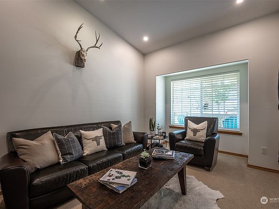 Cle Elum Pines better than new construction home. Spotless creek front rambler on a large level lot in a quiet cul-de-sac. Very bright with an open floor plan concept great for entertaining. Built with custom upgrades, real hardwood flooring, slab granite, upgraded propane fireplace hearth and mantle. Wonderful location on the edge of town. Less than 1/2 mile walk to the elementary school, Jr high and high school. Access to Coal Miners Trail nearby. The trail starts in Cle Elum, goes up to Roslyn, Easton and beyond. Home is permitted for short term rental use.