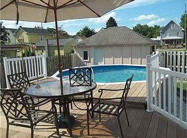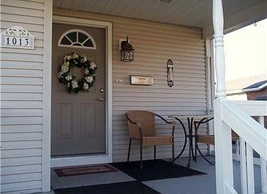 Enjoy an affluent lifestyle at a modest price! Modern style embellished with sophisticated Victorian charm combine to make this grand-scaled residence hard to resist! Crisp maintenance-free vinyl siding is complimented with architecturally pleasing shaker accents. A relaxing open front porch cordially welcomes you through a decorative front door into a formal entry underscored in solid wood parquet flooring while a heavy crystal triple globe light fixture offers a flattering period touch. Sunshine pours through double windows delightfully illuminating spacious living room flanked with coat closets and underlined in neutral carpeting which graciously extends into the expansive dining room overflowing with charisma, perimetered with decorative chair railing and crowned with a contemporary bronze lighted ceiling fan. Adjacently located fully-equipped gourmet kitchen is complimented by plentiful oak cabinetry with built-in wine rack, pantry, ceramic tile flooring and stylish ceramic backsplash with coordinating