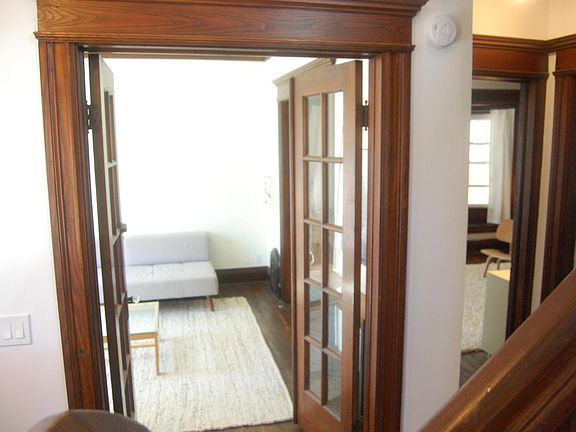 Available Sept 1st - a full 3 bed 2 bath apartment in this fully renovated historic triplex home near University of Rochester. This very spacious elegant apartment with high ceilings offers boasts beautiful hardwood floors and trim, GE profile appliances, updated furnace and hot water tank, off-street parking for 1 car, plenty of additional on-street parking right in front, LG front loader washing machine, and nice new tile bathrooms with Grohe fixtures. The house also has basement storage, bike storage, and beautiful front and back garden. Above live two professional tenants who enter from the rear of the house via their own staircase. Wifi included. Uniquely peaceful and wooded neighborhood with access to miles of running paths along the river to downtown or Genesee Valley Park and beyond. NOTE: The apartment has its own entrance and its own interior staircase to the upper two bedrooms and upper bathroom. The two apartments on the second and third floor of the house enter from an exterior rear staircase which is entirely separate. **The house received a NYSERDA grant in 2015 for updated blown-in insulation, new Rheem furnace and on-demand hot water tank, and a Monroe County LEAD grant in 2016 for new windows and permanent lead controls. No smoking Owner pays for water, laundry, parking, plowing and wifi.