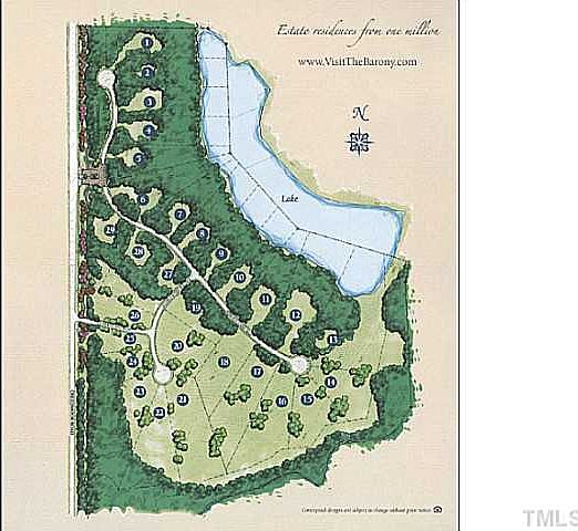 dGated Estate Living at its finest. Incomparable North Wooded Location. The Barony offers exclusive 29 estate home sites on 80 natural acres conveniently situated in North Raleigh. 12 acre lake invites canoeing, fishing, and paddle boating. Future walking trail has been dedicated to Wake County. Verify fees and Perk Tests.