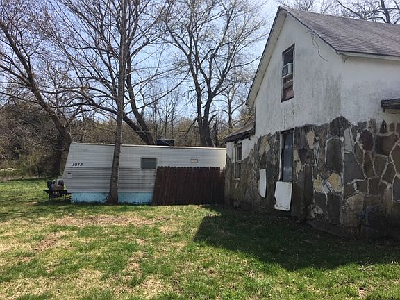 This was a cute rock home at one time, but it has been stripped to the rafters, basically. It had flood damage in 2015, and a renter tried to fix it up, but just got to the tear down phase. He did fix the second story, and added a bath. The property is creek side, very beautiful with large walnut and other hardwood trees. It is almost an acre of land! It you want a piece of country In town, this is the place! There is a single wide trailer that is in good shape on the property, so you could live in it while fixing the house. Owner is a broker