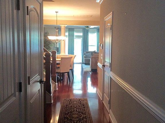 Immaculate 3 BR/2.5 BATH townhome!! 5" cherry hardwoods & upgraded window coverings through OPEN first floor w. custom shelving in LR, crown molding & columns dividing living & kitchen/dining area. Kitchen offers Gourmet Cascading maple cabinets, GE Profile appliances w. gas range, granite counters, hot water spout, & island/bar. Large bedrooms. Master has big closet with shoe rack! Granite, tile & oil-rubbed bronze fixtures in bathrooms. Screened tiled patio! Pool/clubhouse & washer/dryer included.