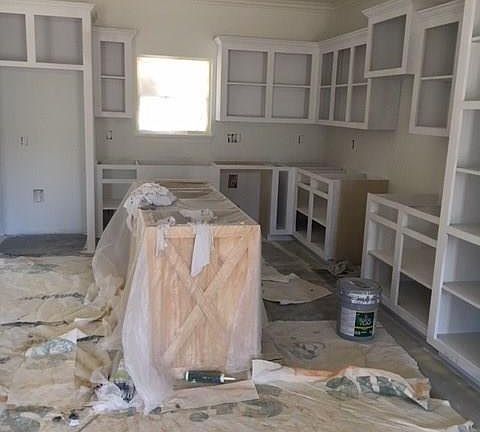 Beautiful shiplap features on the Island/bar in this home. Stained concrete floors throughout. The lot is covered with large trees for a nice, shady yard.
