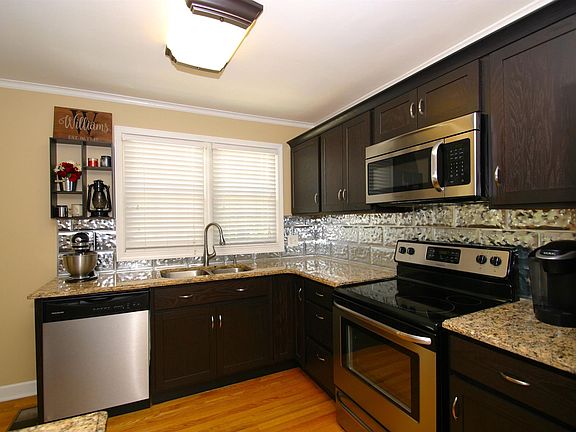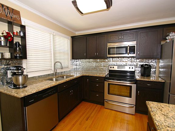 Lovingly renovated all brick mid-century 4 bdrm ranch with new cabinets/granite/island/stainless in kitchen; masterfully upgraded bathrooms; two covered porches; extra large parking pad for boat/RV in rear, 2-car garage plus workshop. Beautiful treed 1/2 acre level lot. West side of Gallatin close to lake, shopping. NO HOA.