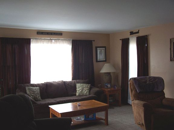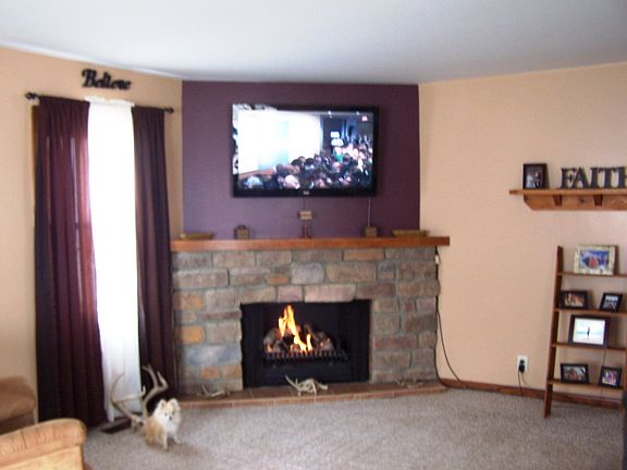 Entrance: Large living room has a corner fireplace (present owners have never used it), painted drywall. Kitchen: Vinyl floor, birch cabinets, stove and refrigerator included. Dining Room: Laminate floor, painted drywall. Bedroom: Large room has carpet, painted drywall, closet. Bedroom: Large room has carpet, painted drywall, closet. Bath: Ceramic floor, white fixtures, painted walls. Den: This can be used as den or bedroom. Lots of natural light, painted walls. Laundry: Painted walls, vinyl floor, hook ups for washer/dryer, entrance to garage. Upstairs: 2 more bedrooms. Painted walls, carpet. Basement: Outside entrance to the basement that houses gas forced air furnace, central air and water heater. 1 car garage, with carport in front of it.