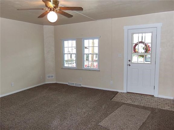 Charming house with a bit of a facelift; "easy to care for" laminate and vinyl flooring; wonderfully sized living rm perfect for entertaining; warmth of knotty pine accent walls in the formal dining rm; equipped step saver kitchen; spacious primary bedrm; nicely sized 2nd bedrm; pristine white updated 2nd floor bath; lower-level half bath; replacement windows are a combination of Andersen and Pella tilt-in windows for ease of cleaning 2015 m/l; Goodman high efficiency furnace 2009 m/l; H2O tank 2020 m/l; roof 2012 m/l; breakers; front covered sitting porch; partially covered back porch; oversized, detached garage; off street gravel parking pad; fenced in yard; buy with peace of mind as this little beauty comes with a 1 year home warranty to the lucky new home owner(s); PROUDLY OFFERED!!!