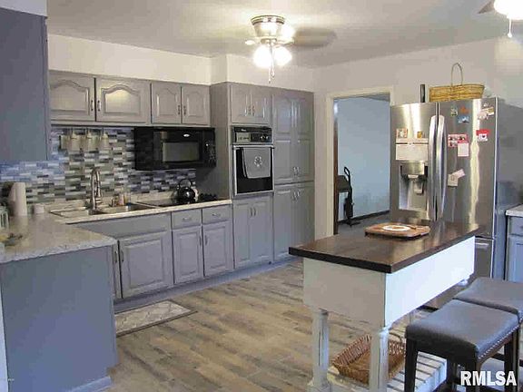 This updated home is ready for new owners! It has 3 bedrooms, 2.5 baths, hardwood floors, ceramic tile and new carpet. The kitchen features new backsplash, coffee bar area and mobile island. All this is open to the dining room. Relax in the cozy living room with a brick fireplace that can be gas or wood burning. There is a 2 car detached garage and a nice storage shed. This home is in a desired neighborhood only one block from the school. Call today for your showing! Cooktop/oven, dishwasher, washer & dryer, freezer in garage, microhood, refrigerator
