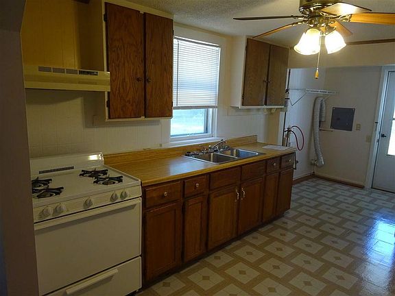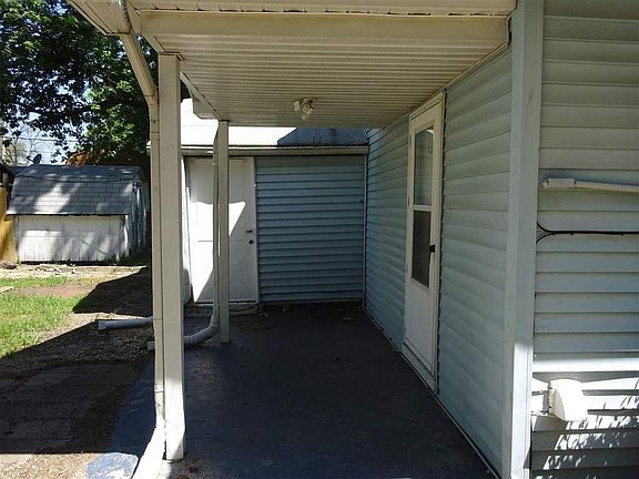 This 2 bedroom, 1 bathroom ranch home is move in ready. It offers newer carpet, eat in kitchen, newer paint, storage shed attached to back of home and covered front porch. Drive way runs from street to alley for easy access.