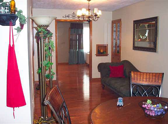 Brick 3bd 1+bath ranch. 1600sqft with finished family room & 1/2 bath in basement. Fresh paint inside & out. Hardwood flrs thruout. New blinds. Sitting room or formal dining room off living room. Informal dining & eating bar in kitchen, 2 fire places (wd brng) 30+ft family room in bsmt w/moldigs, built-ins & fireplace. Wooded lot. This one will suprise your clients-a must to see for any buyers taking advantage of the $8,000 stimulus pkg. Your clients will love knotty pine cabinets & roomy kitchen.