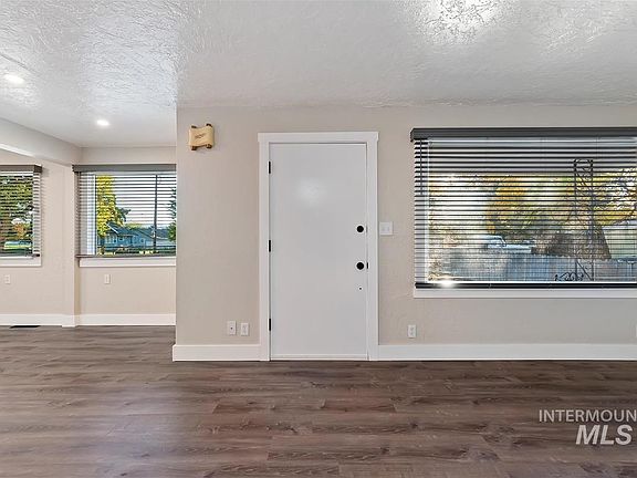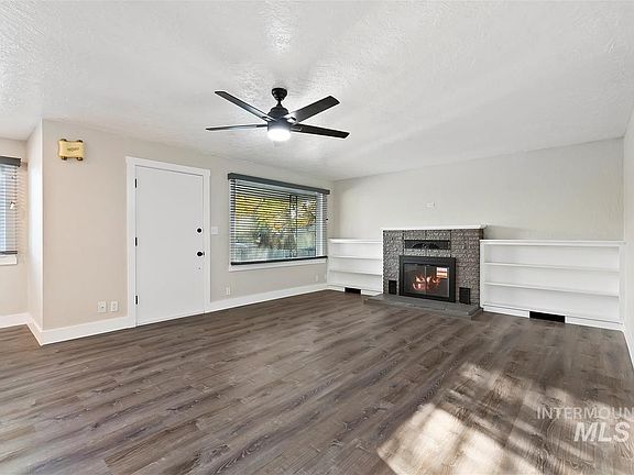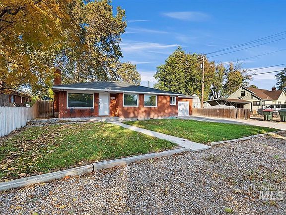 Charming brick single level, 2 bedroom 1 bath w/ garage located in the heart of Meridian's Old Town District. TOTALLY UPDATED; with New roof, windows, water heater, kitchen appliances, cabinets & front door. Freshly painted, updated interior with LVP flooring and new lighting/fixtures thru out. The spacious open great room includes a handsome wood burning fireplace w/ new doors & screen. New window coverings thru out house. Stunning kitchen has all new cabinets, quartz countertops and backsplash, plus new LG stainless steel appliances, farmhouse sink & faucet. Large utility room off kitchen has a pantry with new cabinets. The updated bathroom has new modern vanity, sink , toilet, flooring, new bathtub surround, shower doors and fixtures. Both bedrooms are generously sized, with new ceiling fans and lighting. Added cabinets for extra storage. Private fenced backyard. Zoned O-T. No HOA or dues.