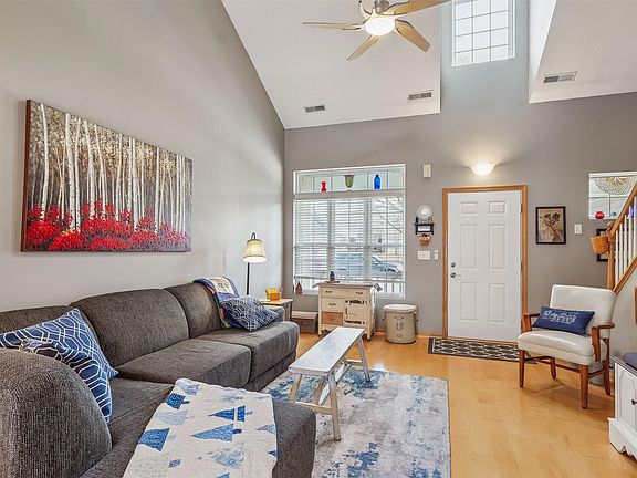 Welcome home to this well-maintained 1.5-story townhome offering comfort, convenience, and peace of mind. The thoughtfully designed floor plan features a main-level bedroom, perfect for flexible living, while two additional bedrooms upstairs provide privacy and space. Upper-level laundry adds everyday convenience right where you need it most. This home shines with numerous recent updates, including a new furnace (January 2026), roof (2024), water heater (2018), and stove and refrigerator (May 2025) allowing you to move in with confidence knowing the big ticket items are already done. Situated on a slab foundation, this townhome offers low-maintenance living with lawn care, snow removal, exterior maintenance, and trash service all included in the monthly association dues. Spend less time on upkeep and more time enjoying your home. Whether you’re looking to downsize, simplify, or find a move-in-ready opportunity, this townhome checks all the boxes. Schedule your showing today.