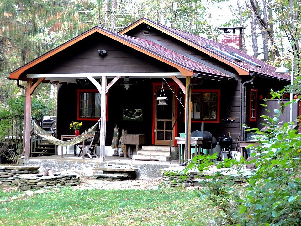 CLASSIC American pine 1960's kit CABIN with MILLION DOLLAR VIEWS and TOTAL SOUTHERN EXPOSURE! Escape from city stress in this idyllic, completely secluded and private setting! Perfectly situated for year-round Catskill fun - explore the surrounding STATE LAND and ESOPUS Stream across the street , enjoy hiking on Slide Mountain, kayaking, hitting the farm markets or just napping in the hammock! This one checks every box and is photo worthy with every turn: cathedral wood ceiling, EXPOSED BEAMS, wood burning STONE FIREPLACE, HARDWOOD YELLOW PINE FLOORS, HUGE DECK facing MASSIVE MOUNTAIN VIEWS and not a neighbor in site , COVERED FRONTIER PORCH, stone patio with BUILT-IN GRILL, FIRE-PIT and seating area. Fabulous OUTDOOR SHOWER! Huge 2-car BARN with portico! TOTALLY TURN-KEY - NEW ROOF, COPPER GUTTERS, UPGRADED ELECTRICAL SYSTEM, BURIED CABLE/ELECTRIC/PHONE to house and barn, abundant storage in full basement with 9' ceilings! Easily reconfigured as a 2 bedroom. GREAT AIRBNB/RENTAL potential just minutes from Belleayre Ski Resort, Full Moon Resort, Frost Valley YMCA and the Charming Villages of Phoenicia and Kingston. Hip and heavenly awaits - only 2 hours from the GWB.
