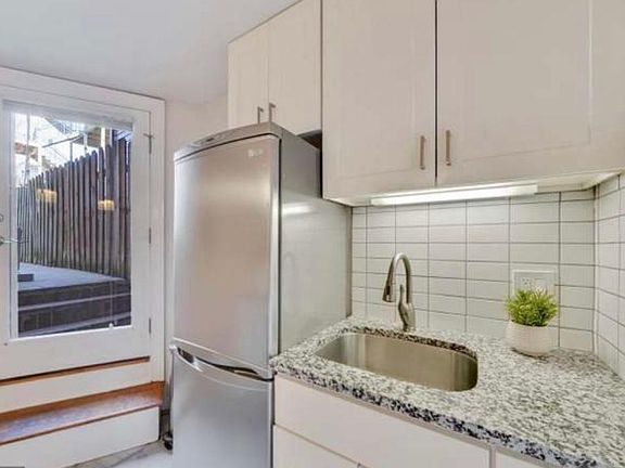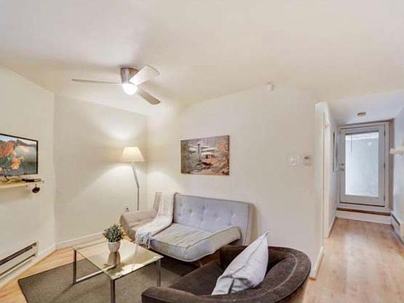 This bright and spacious 1,000 sq ft one bedroom garden apartment with high ceilings and in-unit laundry is in a quintessential DC rowhome on a quiet street in Columbia Heights/Petworth. It is available from December 1st. The bedroom has a built-in California closet and can fit a queen-sized bed. The living space is an open concept with enough space for a sofa, dining table and work-from-home set-up. The kitchen has new appliances, granite counter-tops, and a breakfast nook. Front and back private entrances allows for lots of light and a cross-breeze on summer evenings. In-unit laundry, a full bath tub shower, and temperature controls for each room make this the perfect apartment. It's walking distance to two Yellow/Green metro stops (Columbia Heights & Petworth), BikeShare, Bus lines (Circulator, 50s, 60s and Crosstown H lines), 11th Street dining, supermarkets (Giant, Safeway, Yes! Organic, local grocery, farmers market), lots of papusarias and DC's best taqueria. 10 min by metro to Nat'l Mall; 15 to the Capitol. Street parking is available (Zone 1&4). Visitors can apply for parking passes at ParkDC Permits online or on the mobile app. Owners live upstairs but the apartment is only accessible through private exterior entrances. It is not connected to the main house, and is separately metered for electricity. We have a very friendly dog are fully vaccinated!! Furnishings include a fully equipped kitchen with counter-top appliances & bar stools for the breakfast nook. The bedroom includes a California closet, queen size bed and mattress, and a sitting chair. The living room has a sofa bed & dining table and chairs for two.