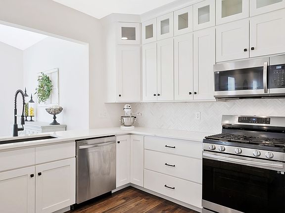A home like this doesn't come along everyday! Listed below appraised value (instant equity!!) over $75,000 in updates and upgrades to his dream home in the past year! Discover a host of premium features including a BRAND NEW KITCHEN (2023) new QUARTZ COUNTERTOPS, floor-to-ceiling white shaker cabinets, a stunning tile backsplash, a walk-in pantry (custom built shelving). No Carpet anywhere! All new flooring (2023), a dining room with vaulted ceiling w/ custom chandelier (2023). ALL NEW BATHROOMS, exquisite wallpaper, new vanities, hardware, lights, toilets (2023). Rare find with all beds up! The primary suite is a sanctuary, featuring a CUSTOM-BUILT walk-in closet, ensuite bathroom showcasing a standalone soaker tub, frameless luxury tiled shower, all-new vanity and fixtures (2023). More highlights include a deluxe built-in workspace, fresh paint, new doors, all new lighting, water purification system, stunning tiled laundry, a covered front porch, ample backyard space (backs to massive green space). COMMUNITY POOL, playground, walkable, and prime location! This home truly stands out – Don't miss it!
