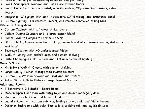 - Included: Double Oven, Dishwasher, Wine Cooler, Disposal, Tankless Water Heater