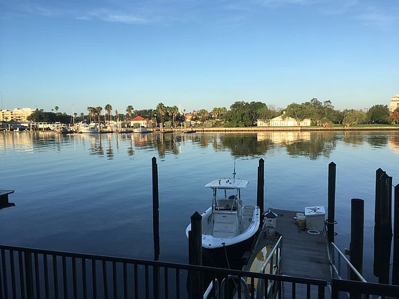 Bright and inviting deep water home located in the heart of Tampa on gated and Private Harbour Island. This home greets guests with a private gated entry area at the front door which opens into a bright and open two story foyer. The water views capture the eye as you walk through to the great room and dinette area which opens to the Kitchen for a modern and very open floor-plan. The 10ft ceilings and large windows let in lots of light and constant views of the 550ft wide Seddon Channel channel. The kitchen is very well appointed with commercial grade stainless steel gas range/oven/ hood, wine refrigerator, and 2 additional refrigerator drawers for extra storage. A butlers pantry passes from the kitchen to the dinning room which has coffered ceiling and is currently being used as a playroom. There is a downstairs full bath and a bedroom with great built in shelving, which makes for an excellent office. The master bedroom is over-sized and offers a generous sitting area, wonderful water views, spacious walking closet with built-in organizers, a great master bath with garden tub and large shower. Two secondary bedrooms with their own generous on-suite baths and new cork flooring keep small footsteps quite. Outside (in back) is a paved lanai area with a new pool (with spa jets and waterfall) and a custom floating dock equipped with water, electric, and can accommodate a 50ft boat. The westward view over Seddon Channel creates incredible sunset views.