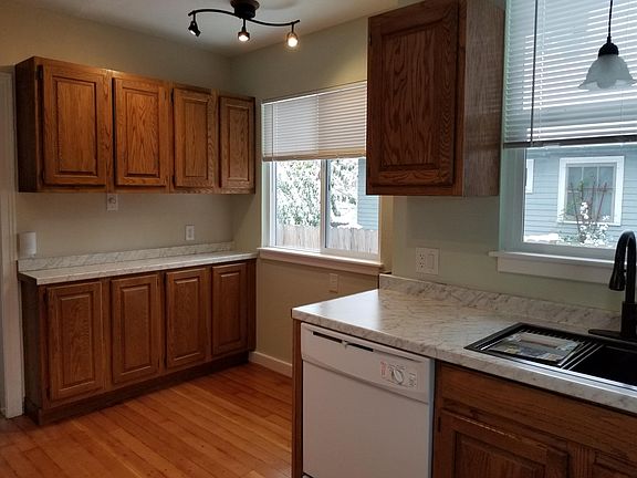 MUST SEE !1926 beauty that just got a total makeover ! TWO FULL KITCHENS ! Mother in law unit downstairs. 2 bdrms, kitchen, full bath, laundry/ craft room. All new: Paint..inside and out. Newly textured walls. Brick approach sidewalk, planter boxes, new sod yard is gorgeously landscaped and maintenance free ! Securely fenced. New exterior doors, carpet, kitchen: floor, all appliances, cupboards & counters, lighting, windows. High efficiency furnace 95% & hot water heater, hardware in bathroom, insulated drapes. New stone walkway to new deck & back door. Single car garage. Street and alley parking. Lawn mower is provided by owner.