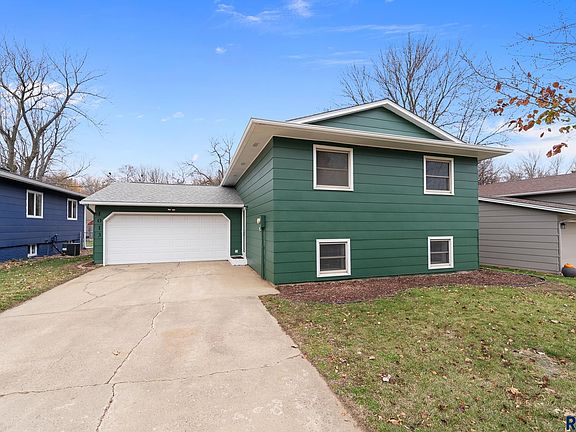 This charming modern traditional home, is truly nestled into one of the most unique neighborhoods in all of Sioux Falls. Perfectly hidden away form the hustle and bustle. As you arrive your eyes will be captivated by the lush greenery, trees and calmness that engulfs the entire area. This stunning split foyer home, offers a modern-moody vibe, with captivating paint choices, unique style, with an open living concept, large bedrooms, jacuzzi tub, Huge fenced back yard, Large garage, and a substantial amount of storage. Special upgraded features include; new flooring (Carpet & LVP), bathroom vanities, interior & exterior paint, New iron-rail running along the stairway, new-millwork throughout including doors, kitchen cabinets & counter top and so much more.