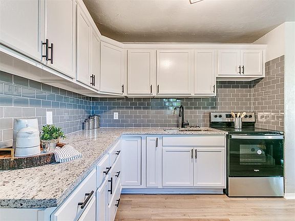 Better then new! Fully remodeled with modern updates throughout this home! Wow, a must see adorable 4 bedroom home near highways, medical facilities, and eateries! All new 3 cm Granite countertops in kitchen, new luxury vinyl flooring throughout kitchen, dining, living, and hallway. New carpet in all four bedrooms. The hall bath has been remodeled with new trendy vanity, mirror, lighting, tile floors, and a modern tiled shower. Your kitchen is a must-see boasting new white cabinetry with black hardware, new stainless steel flat-top stove, beautiful granite counters, and a subway tile backsplash. The master is spacious with a ceiling fan, new carpet, double door closet, and attached laundry area. Three additional bedrooms are good sized with new ceiling fans, carpet, stylish paint colors, and blinds. The home features a new water heater, newer windows, vinyl siding, newer roof, designer accents, an oversized backyard and so much more! This home has it all and will not last long! Note vent hood is on order and will be installed. Owner is a licensed agent in the state of OK 143574