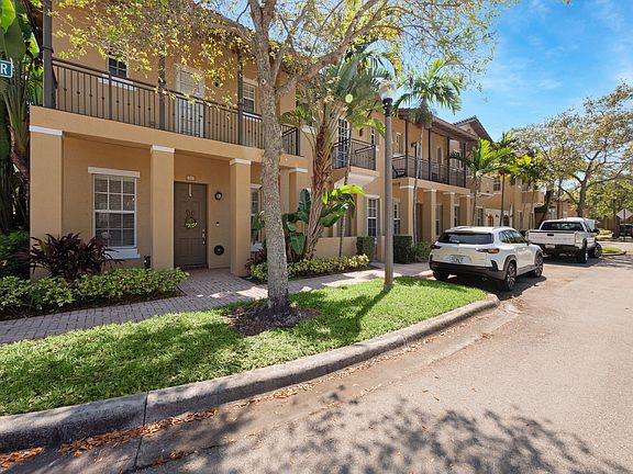 Beautifully maintained CORNER UNIT 2-bedroom, 2.5-bathroom townhouse is located in the sought-after Cobblestone community. NO HOA APPROVAL needed and CAN RENT IT OUT RIGHT AWAY! Plus HOA fee includes Wifi AND cable with HBO! This community is situated in a great school district and is conveniently close to shopping centers. You can enjoy easy access to the community pool and clubhouse, all within walking distance. This townhouse is freshly painted and boasts an excellent layout that includes a cozy living room, a formal dining area, and a kitchen that overlooks the family room. The kitchen features a BRAND NEW refrigerator and microwave, recessed lighting, granite countertops, white cabinetry, a snack bar, and a pantry for added convenience. You'll also appreciate the extra storage space under the stairs. As you head upstairs, you'll find laminate floors on the second level and a newer LG washer/dryer set. The master bedroom includes access to a spacious balcony, a walk-in closet, and an ensuite bathroom equipped with a walk-in shower and granite countertop. The second bedroom also comes with its own full bathroom. Enjoy sipping your morning coffee on the front porch or back patio! This home is fitted with a complete set of hurricane panels for easy storm preparedness. Community amenities include a pool, playgrounds, clubhouse, wifi, cable with HBO, and exterior maintenance. Don't miss out and schedule your showing today to explore this wonderful property!