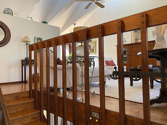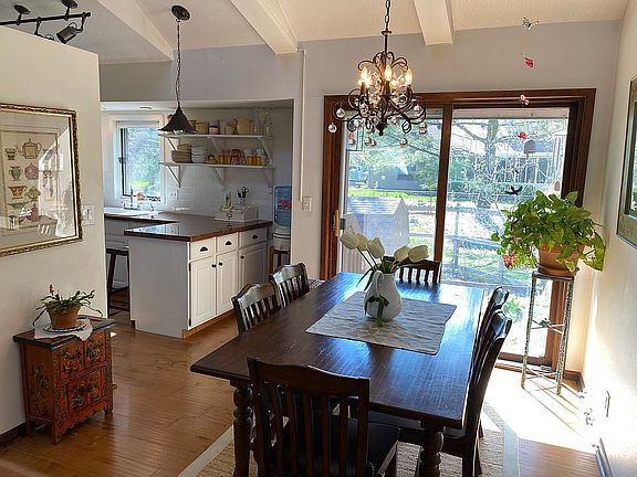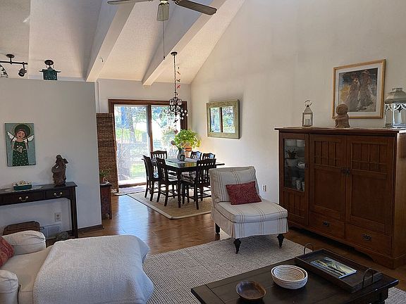 Delightful California style home with high vaulted ceilings in every room, woodwork, sky lights in master bedroom, bathroom, living room, family room. Quiet neighborhood, near schools. House faces east. Two car attached garage. Totally updated throughout with custom finishes. Home is in fantastic shape - move in ready. Sunny, open, expansive feeling inside with privacy from the street. Large backyard deck with beautiful cozy perennial gardens on a large lot.