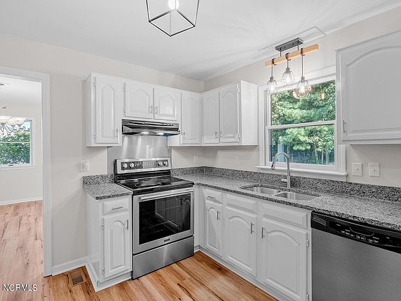 Looking to live outside city limits while being close to everything? This 4 bed, 2 1/2 bath, 2 car garage with wrap around front porch is located in the Mount Hermon Neighborhood and is looking for new owners to love many of the new renovations. Have fun entertaining outside on the back deck or the screened in porch. Enjoy New Paint inside and out, New LVP flooring throughout downstairs and bathrooms, New Carpet upstairs and on staircase, New Granite Countertops in kitchen, and several New light fixtures and ceiling fans. Just bring your stuff as it is move in ready. Close to Shopping, Restaurants, Hospital, Grocery Stores, and Downtown. Easy commute to CG Base, Virginia, Hertford, and Outer Banks.