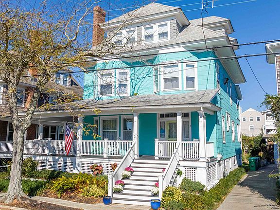 Introducing a spectacular Cape May gem nestled just one block away from the pristine Queen Street Beach, this three-story coastal retreat on Stockton Avenue is the epitome of grandeur and flexibility. Boasting a total of 8 bedrooms, 3.5 baths, and a convenient one-car detached garage, this historic beauty, built in 1905, beckons with its timeless charm and impressive features. This property is currently operated as a duplex. As you approach, you'll be captivated by the allure of the expansive wrap-around porch, a perfect spot to enjoy the sea breeze or watch the world go by. Stepping inside, the first floor welcomes you with a stately living room featuring a cozy fireplace, an inviting dining room with ample space to comfortably seat 12, and a charming kitchen that's ideal for whipping up coastal-inspired meals. Additionally, the first floor offers a full bath, a bedroom, and a convenient half bath with an exterior entrance, making it an ideal space for accommodating guests or family members. The second floor unfolds with five additional well-appointed bedrooms, creating a haven for rest and relaxation after a day spent at the beach. A full bath on this floor ensures convenience and comfort for everyone. For even more versatility, the third floor is set up as a self-contained apartment, featuring a fully-equipped kitchen, a cozy living room, two bedrooms, and a full bath. This unique layout allows for independent living arrangements, making it perfect for multi-generational families or those seeking a rental income opportunity. This remarkable property boasts a lucrative rental history, presenting an irresistible investment prospect. You have the flexibility to either rent one unit and relish the other for personal use or capitalize on the full-house rental potential. Furthermore, this property is a candidate for conversion into a single-family residence, subject to buyer obtaining necessary approvals. Outside, a lush and inviting backyard offers the perfect setting for barbecues or post-beach relaxation. The driveway is thoughtfully designed for other uses, with the garage serving as a secure space for bikes and more. Situated in the highly desirable Stockton Avenue neighborhood, this extraordinary property is only a short stroll away from Cape May's charming downtown area, ensuring that you're never far from the town's vibrant culture and culinary delights. And with the beach just a block away, you'll have quick and easy access to the sun, sand, and surf that Cape May is famous for.