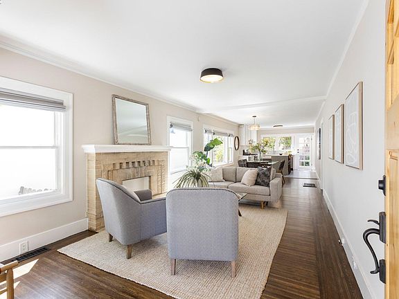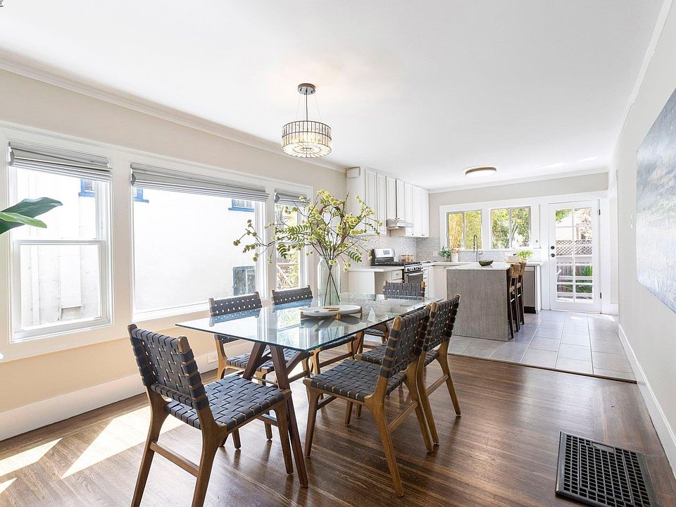 A classic East End home, reimagined. As you step through the front door, you're greeted by the effortless elegance of this open concept, complemented by refinished vintage Oak floors that add warmth & sophistication. Fresh paint inside, along w. designer fixtures & A/C, elevate this well-appointed bungalow to modern chic. A half flight of stairs leads to the spacious bedrooms, thoughtfully separated by a stylishly renovated full bath for added privacy. The charming kitchen features modern amenities, a mosaic glass backsplash, & porcelain tile floor. Imagine prepping vegetables at the sink while admiring your backyard or enjoying a latte at the spacious kitchen island. The kitchen opens onto a large, arbored deck, perfect for outdoor living, which overlooks a landscaped lawn, a raised garden bed, & shed for additional storage. Mature bamboo & ornamental trees surround the backyard, enhancing the seclusion of this lush space, making it a true oasis. The finished basement offers additional living space, ideal for a home office, gym, or entertainment room. Only 2 blks. from sought after Otis Elm, close to Lincoln MS & Alameda HS, multiple parks, a State beach, local markets, downtown restaurants, shops, & historic theater. A short distance to BART, Oak. Airport & SF Ferry. Go today!