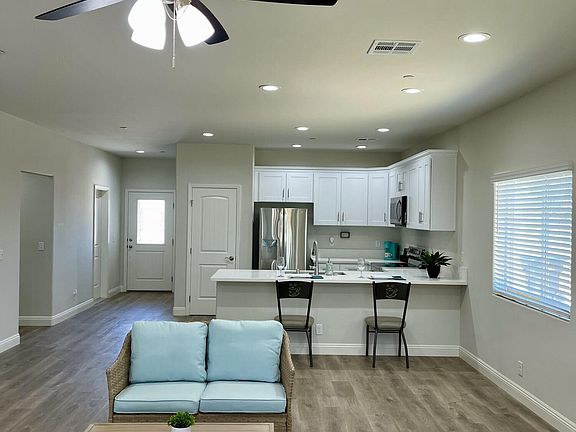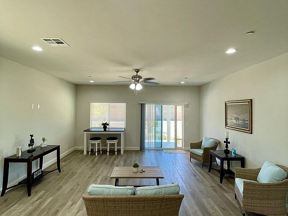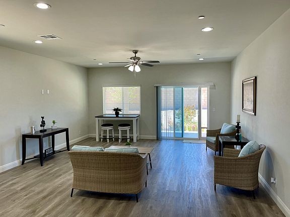 Newer 4 Bedroom 2 bath Single story home with PAID SOLAR! Generous great room with stunning kitchen that overlooks the dining and living rooms. The kitchen features Quartz countertops, walk-in pantry and beautiful stainless steel appliances, Luxury plank flooring and 9 ft ceilings can be appreciated throughout the home. Large primary bedroom features walk-in closet and ensuite bath with double sinks. indoor laundry room, 2 car finished insulated garage with auto opener. This energy efficient home comes equipped with owned 8kw solar system and Enphase microinverters, AC unit Seer 14,2x6 construction w/R-19 insulation in wall and R-38 in ceilings per the builder. Block wall fencing and RV side access gate. Xeriscape landscaping in the front, covered patio in the back.