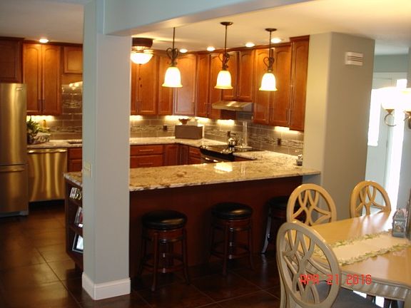 WOW FACTOR ! ! ! Custom kitchen with cherry cabinets (soft close), custom door pulls, granite counter tops, subway tile W/glass tile inserts backsplash, fantastic high end 18 inch square porcelain floor tiles throughout kitchen, dining space, foyer and hallway. All open to the living room. French doors lead to the office space (4th bedroom). Additional French doors lead to the 4 season room (Rec room dimensions) off the kitchen. Surround sound in the family room with Bose Speakers in the ceiling. The washer and dryer are currently in the hallway bath (doors are stored). Separate laundry room (12-7 x 11-6) off the 4 season room currently used as craft room. The average for this totally electric is $185/monthly. The heat pump recently updated with a $1500 repair. Two electric water heaters.