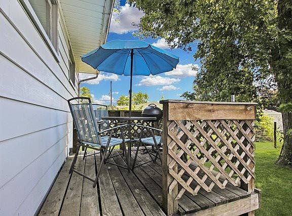 Cozy 2 Bedroom Ranch with a Large Eat-in Kitchen, Big Bedrooms, and a Full Finished Basement with a Bar, Laundry Room & Half Bathroom. The Exterior features a Nice Yard, Deck and Patio with Fencing!