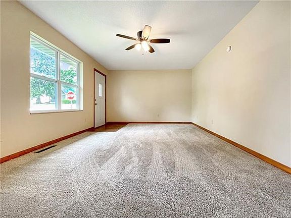 Situated on a corner lot, in a great neighborhood, this ranch home has so much to offer. A maintenance free exterior will free up your weekends to relax in the back yard shaded by mature trees. The interior boasts fresh paint and new flooring. A master bedroom offers a large walk in closet and half bath perfectly situated on the back side of the house. Two additional bedrooms share a full bath off the front side of the house. The main living spaces have an open flow thru design creating an open floor plan concept. An open unfinished basement has ample storage space and room for expansion.