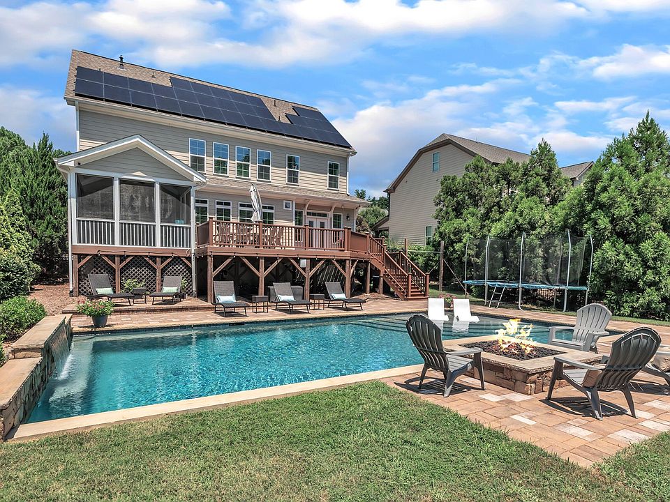 Beat the heat in this Homes by Dickerson beauty with your very own resort-style saltwater pool for just $850,000. Two waterfall features and a tanning ledge highlight the pool - plus an elevated stone fire pit, Trex decking, and a roomy screened porch. Thermador appliances, a gas cooktop, double oven, a dedicated home office space, (plus a home school option) and an impressive primary bedroom walk-in-dressing-room-closet. Primary bedroom upstairs. Energy-saving solar panels, two Tesla powerwalls for whole-home backup, and a Tesla EV Charger. Easy to show, easy to sell. Nearby top rated private & charter schools like Franklin Academy and Envision. The very popular Heritage subdivision offers the best of everything - playgrounds, two community pools (one with a lazy river), sidewalks, optional golf membership, clubhouse/restaurant, and walking trails. In fact, a trailhead is just a few houses down the street in the cul de sac. Refrigerator, washer dryer, and garage refrigerator also included. Welcome to your happy place - 1013 Wandering Way - at an unbeatable value.