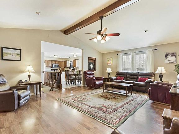 Fenton, Fox Schools; Four Bedroom, Three Bath Ranch Home! Vaulted Great Room with durable Pergo flooring; Updated kitchen features tile flooring, center island with granite top, stone-tile backsplash, custom cabinets with crown molding, newer smooth-top range/stove, DW & microwave, pantry and atrium door to deck which offers a retractable awning; Master Bedroom Suite with newer carpet, walk-in closet and bath with tile floor & step-in shower; Two additional bedrooms and updated hall bath complete the main level; Finished walk-out lower level offers spacious rec room, sleeping area with closet, full bath with separate tub and shower and atrium door to patio; Spacious fenced (low maintenance vinyl) yard backing to trees; Trane HVAC with digital thermostat, 2017; Roof, 2017; Hot water heater, 2016; Newer garage door, track and opener
