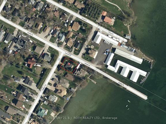Three bedroom, two bathroom home or cottage next to marina and boat launch. Tall cedar hedges hide the home from the road. Board and Batten finnish with gas heat, municipal sewers and drilled well. Rustic wood interior with wood floors. Gas fireplace, laundry. Primary bedroom features 3 piece ensuite bath. View of the lake. Great investment, secondary home, space to park your water toys! Lots of parking. 1129 Square feet, built 1929, moderately updated and insulated 2009, Breakers 100 AMP, Shingles 2019, Gas furnace 2019.
