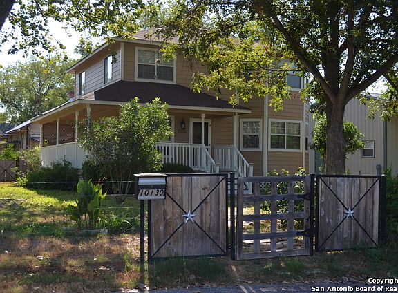 Come relax on this wraparound porch nestled not too far from San Antonio. Security gate leads to your entry to your country home. The main home boasts 3/2.5 with laminate wood floors throughout the home and Saltillo tile in the kitchen, bathrooms, and utility room. The garage was built in 2005 with fully equipped apartment that is ADA (1600 sq. ft.) ; the structure itself is completely commercial grade complete with fan for garage. Mature pecan trees that are perfect for relaxing under and to make family memories with.