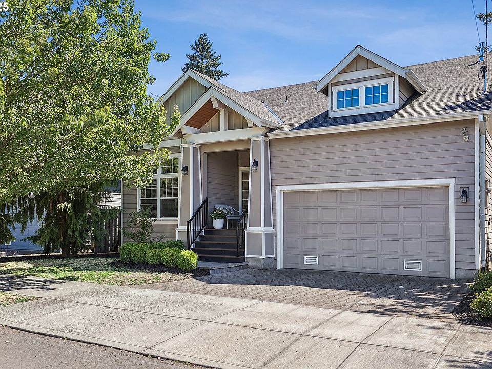 This Craftsman style Northwest Contemporary home combines modern design with the ease of single level living. Featuring 3 bedrooms and 2 bathrooms, it offers 9-foot ceilings throughout, soaring 12-foot ceilings in the living room, and vaulted ceilings in the primary bedroom, creating a bright, open, and welcoming atmosphere.At the heart of the home is a large kitchen with a spacious island, granite countertops, and stainless steel appliances—perfect for cooking, entertaining, and gathering. Floor-to-ceiling windows in the living areas flood the space with natural light, while a covered patio overlooks your private backyard oasis, providing plenty of room to relax or entertain.Additional highlights include an oversized two-car garage with a motorized bike lift, offering ample room for vehicles, storage, and projects. Custom blinds throughout and Ideally located with easy freeway access and close to everyday amenities such as parks, schools, shops, and restaurants, this home provides the perfect balance of convenience and comfort. Thoughtful design, modern finishes, and outdoor living combine to make this home truly special. [Home Energy Score = 8. HES Report at https://rpt.greenbuildingregistry.com/hes/OR10241336]