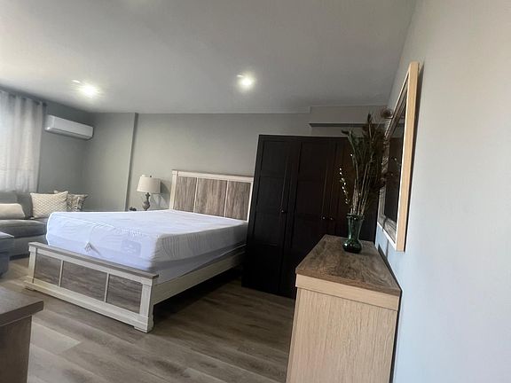Charming fully furnished studio. White kitchen cabinets, with gas stove, fridge, counter microwave, flooring throughout, cute back yard and 1 parking spot. Utilities paid by owner. Spilt system a/c and heating. Please Call Liberty Property Management This is a non-smoking home and no pets. Rental insurance is required. App fee 1 person max. 1 year lease. Owner pays utilities. This is non-smoking home.