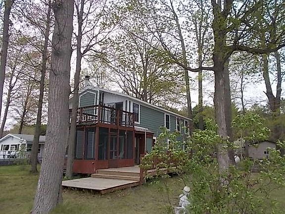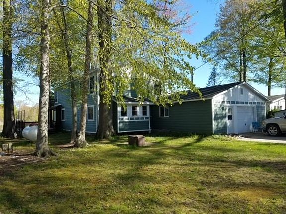 First time offered, This peaceful and tranquil setting has it all, 113' Lakefront, 2 fireplace rooms with walkout decks. One is a large living room and the other the Owners quarters. Both view the lake. Enjoy the sunsets and sunrises off this property with its point. There are 4 generous bedrooms with an attached garage with wood heat for the house that also heats the garage. there are tons of natural foods with the raspberries, apples, pears, etc... Hand made Cherry floors and countertops in the chef style kitchen with a stone fossilized cutting board built in. A real crystal chandelier, and exclusive custom draperies throughout. The King bed in the Owners suite is avail. the antique special built in fireplace mantle from west virginia that is victorian stays,40x24 xtra garage.
