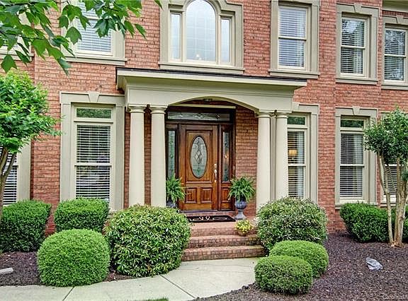 Beautifully maintained full brick 4 or 5 bedroom Golf Course home on picturesque 4th hole of Skybrook Golf course! Office or 5th Bedroom on main with full bath. Formal, living and dining room just off foyer. A library area with wall of shelving for displaying your favorite books and treasures. Huge unfinished basement is plumbed and ready for completion or keep for great storage! Huge deck across back enjoys gorgeous sunrise views too! 3 car garage!