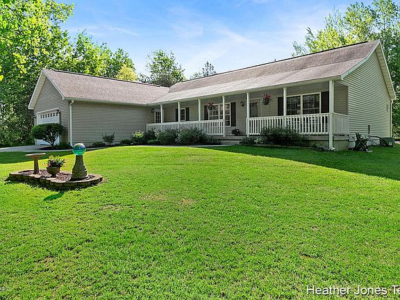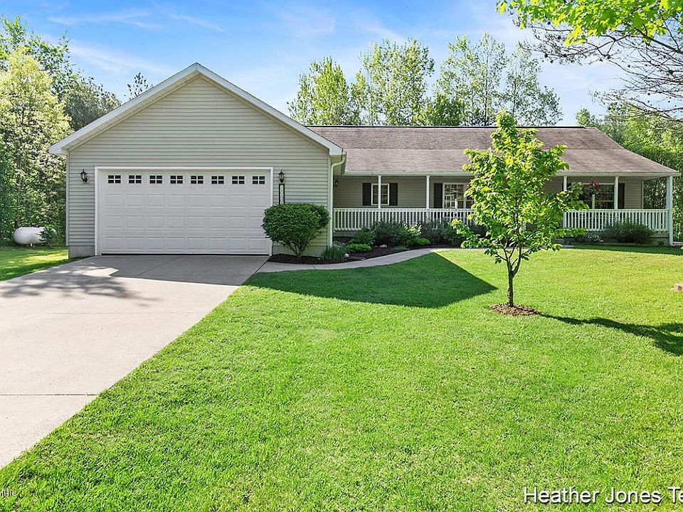 Wonderful, well-maintained home. 3 Bedroom, 2 bath daylight ranch on 1.66 acre lot, end of cul de sac. Enjoy country living, but close town. The large covered front porch welcomes you to this special property. Foyer opens to large living room with beautiful hand scraped wood floors and overlooks backyard, semi formal dining room is perfect for entertaining and adjacent to main living room. Kitchen with upgraded stainless appliances, tray ceiling, large island/snack bar. 2 additional bedrooms. Convenient mudroom area and main floor laundry. Master Bedroom with big walk in closet, large master bath with 2 sinks. Daylight lower level is ready for finishing. Huge 2 stall garage, with 2nd stall extra deep, (great for boats, trailers), large back yard with many perrenials, 12 x 20 barn.