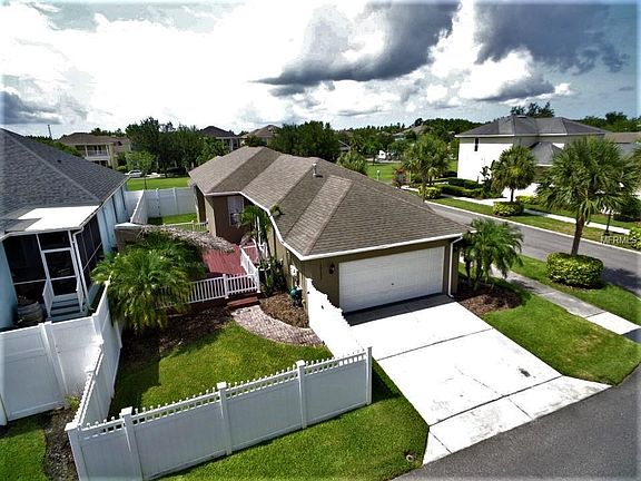What a GEM! Exceptional Design & Function in this CHARMING NEO-TRADITIONAL SINGLE STORY RESIDENCE featuring 3 bedroom, 2 bathroom, 2 car garage, on large fenced CORNER LOT, nestled in highly sought after Master Planned Community of LONGLEAF! State of the Art kitchen boasts granite countertops, elegant cabinetry, glistening stainless steel appliances, breakfast high bar & eat-in nook; Formal Dining Room; Family Room/GREAT ROOM; Unwind on the covered FRONT PORCH overlooking community green space or relax & entertain in the backyard on the covered screened lanai, or on the large open air wood deck & TIKI HUT! Generously sized master bedroom suite with large walk in closet w/organizational shelving, & en-suite bathroom featuring garden tub & separate walk in shower. Bedrooms 2 & 3 share their own hallway & full bathroom. Detached two car garage conveniently connects to the main home through the covered screened lanai. Longleaf amenities include clubhouse, heated pool and spa, parks, playground, tennis/basketball/beach volleyball courts, ball fields, walking trail, shops & restaurants, & year-round community activities. Central yet tucked away, this home is ideally positioned just off State Route 54 and offers easy access to Gulf Beaches, Veterans Expressway, Jay B Starkey Park, shopping, dining, entertainment, medical & excellent schools. Schedule your showing today!