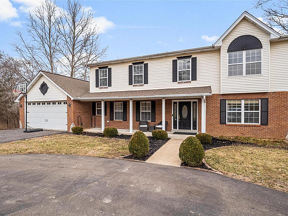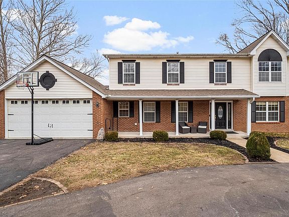 Spacious Two Story on Private 1+ acre lot backing to trees with great views! Almost 2,800 sq ft total in this move in ready home in Lindbergh Schools. Great Curb appeal w/ circle drive. Entry foyer is flanked by large living room and separate Dining Rm. Spacious kitchen features center island, ceramic tile backsplash, and stainless steel appliances. Cozy breakfast room w/ French door opens to maintenance free deck. Family Room with gas fireplace also walks out to deck overlooking woods and unobstructed views! Main Floor laundry. Primary bedroom with vaulted ceilings and two closets. Large primary bath with double vanity and separate tub & shower. Three other bedrooms for the family upstairs. Walkout lower level features add’l Two car garage (4 spots total!). Perfect for boat/s, bikes, or trailer. Bring all the extra toys! Fenced area is great for kids and pets. Property runs all the way down the hill just shy of creek—amazing privacy!