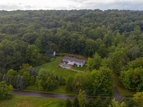If you're looking for both privacy & accessibility, this is the home for you! Contemporary raised ranch w/nearly 3,000 sq.ft. of living space is situated on a gorgeous 2.7 acre lot! You'll enjoy the functional, open concept, which has a beautifully updated kitchen (brand new dark stainless steel appliances & a custom Italian Bertazoni cooktop!), living & dining areas. 2 bdrms, 2 full baths round out the main level. Lower level has a huge FR w/wall of windows overlooking the in-ground pool! 2 more bdrms, a full bath, plus office & even a kitchenette! Would make great in-law or guest suite!