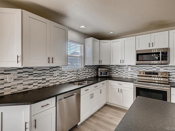 BEAUTIFUL REMODELED HOME IN WONDERFUL NEIGHBORHOOD! ASSUMABLE 2.75% VA LOAN! Bright and sunny open floor plan! Gleaming laminate wood floors throughout the main level. GORGEOUS kitchen with new cabinets, quartz countertops, custom backsplash, new stainless steel appliances, walk in pantry, kitchen island!! Formal living room and dining room perfect for entertaining or a great space to make your office!! Cozy family room with gas fireplace. Upstairs features 4 large bedrooms PLUS a loft! Master suite with HUGE walk in closet and a stunning 5 piece master bathroom with his and her sinks, walk-in shower featuring custom tile and custom glass door, oval tub, new vanity and new floors!! Unfinished basement perfect for storage or additional living area. Enjoy those summer BBQ's in your large backyard with concrete patio and plenty of grass area for games or playground!! You'll love the 3 car garage!! New baseboard, new lighting fixtures, new interior paint, new toilets, new washer and dryer, new door hardware, new vents. New AC. Ring security system with a doorbell and floodlight camera. Wired and wireless network included. Home filtration system with water softener. Wifi enabled garage door openers. Home is located in a wonderful community with fun events throughout the year!! Close to Reunion, schools, trails, parks, restaurants, DIA and more!! Easy access to E-470, HWY 2 and I-76. Don't miss out on owning this IMMACULATE HOME!!!