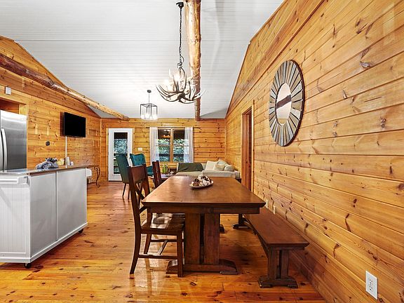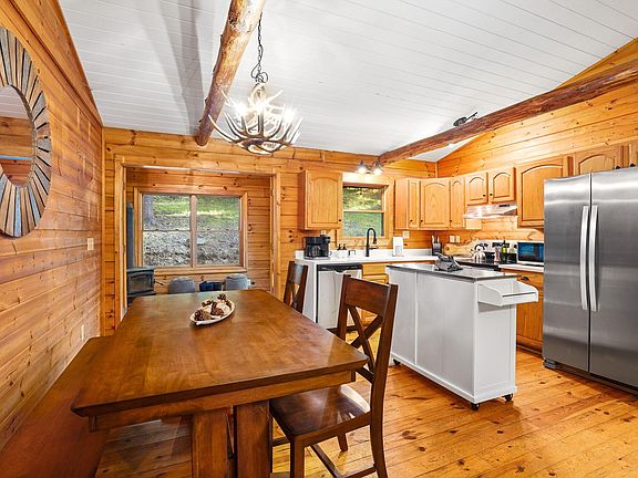 Discover this beautifully renovated log retreat nestled in the picturesque Hocking Hills, offering a perfect blend of rustic charm and modern amenities. Undergoing a full cosmetic renovation in 2023, this property boasts an array of upgrades, including brand-new plumbing and light fixtures, stylish bathroom vanities, and a stunning living room/kitchen featuring a modernized ceiling with white painted tongue and groove. The addition of new hardwood flooring in the bedrooms enhances the home's warmth and elegance.
