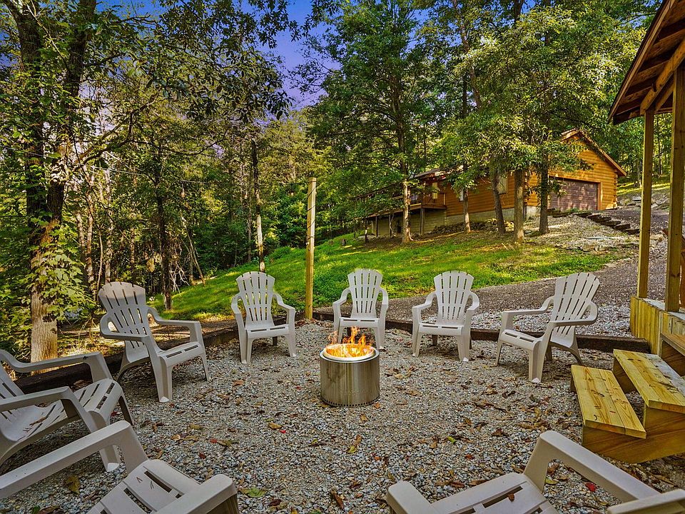 Set on over 5 acres, this property offers ample space for an additional cabin at the back, making it a perfect investment opportunity. Enjoy the tranquility of your own stocked fishing pond, providing a serene escape right in your backyard.